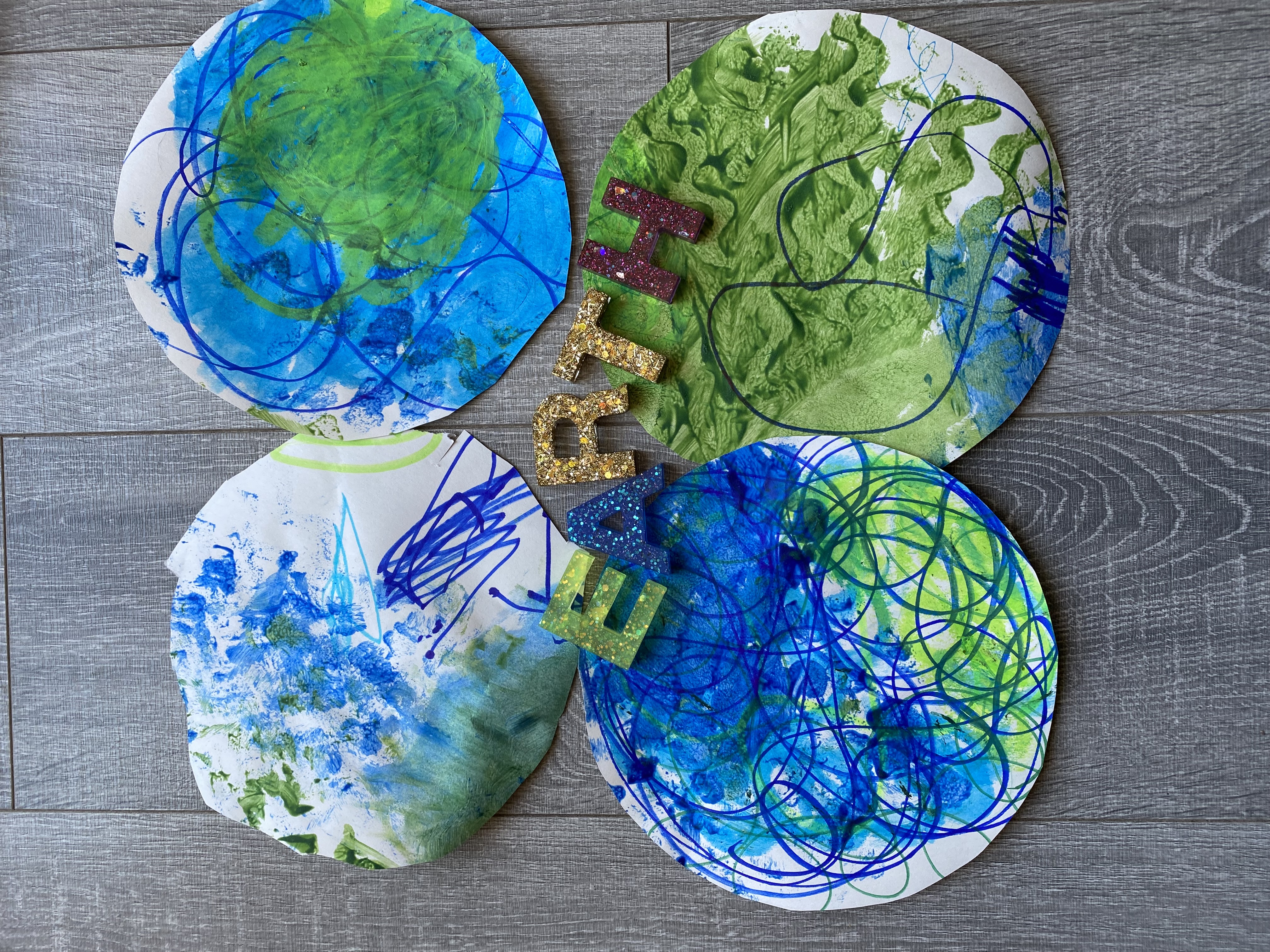Once the children were finished, I cut their artwork into circles to resemble Earth ๐